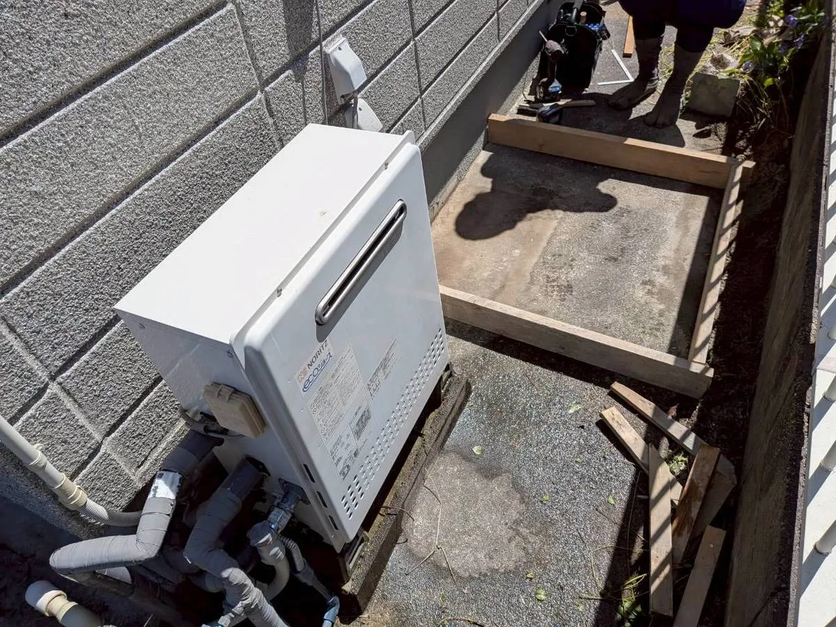 給湯器から水漏れが確認、お湯はりができないとの事。基盤まで故障していたので、コンクリート打ちをして