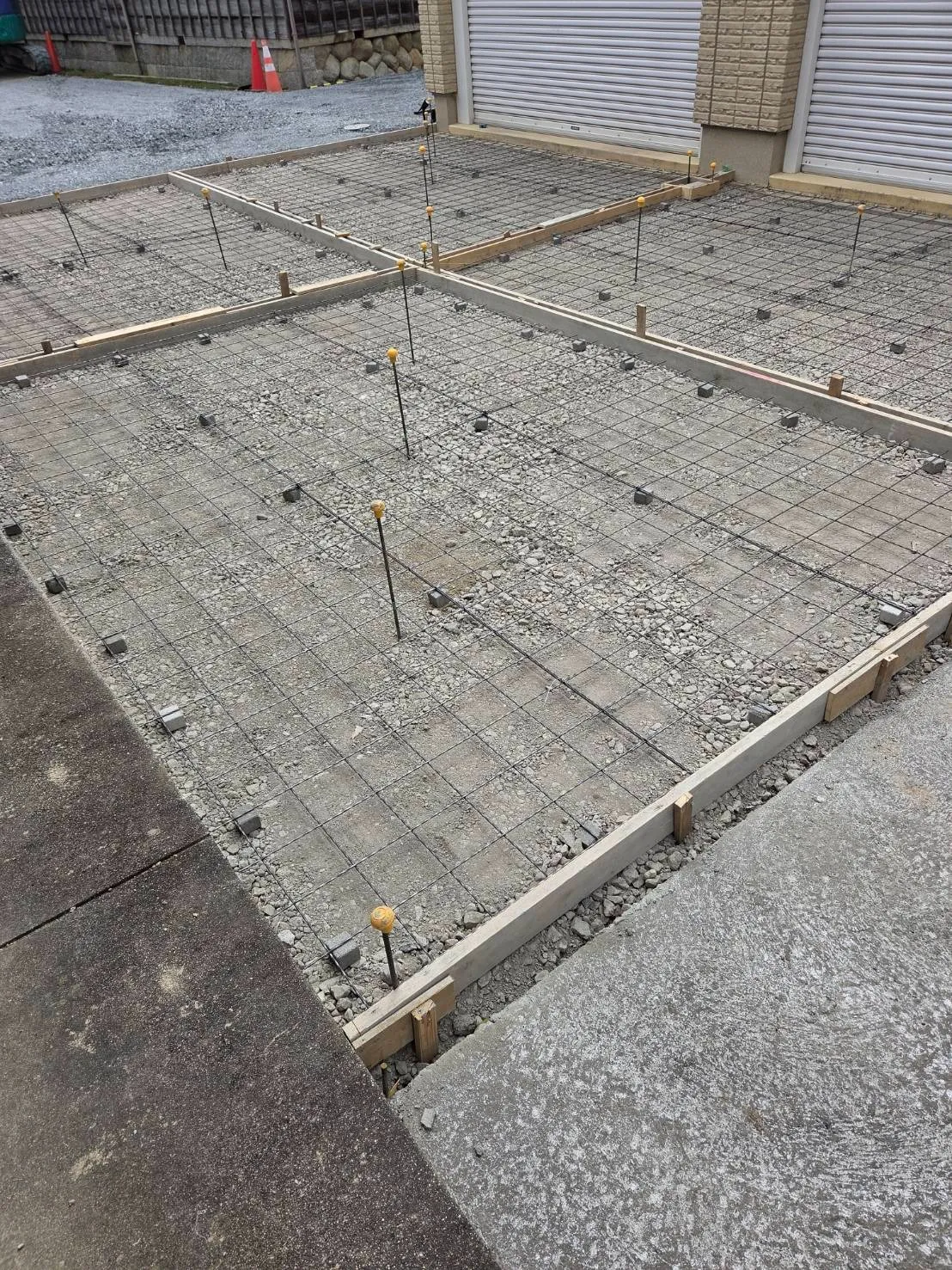 鈴鹿市のお客様宅にて、駐車場スペースのコンクリート舗装工事を行いました。ワイヤーメッシュを敷き込み、強度を確保していきます。細かい高さ調整や勾配取りも丁寧に行い、水はけのよい仕上がりを意識しています。
